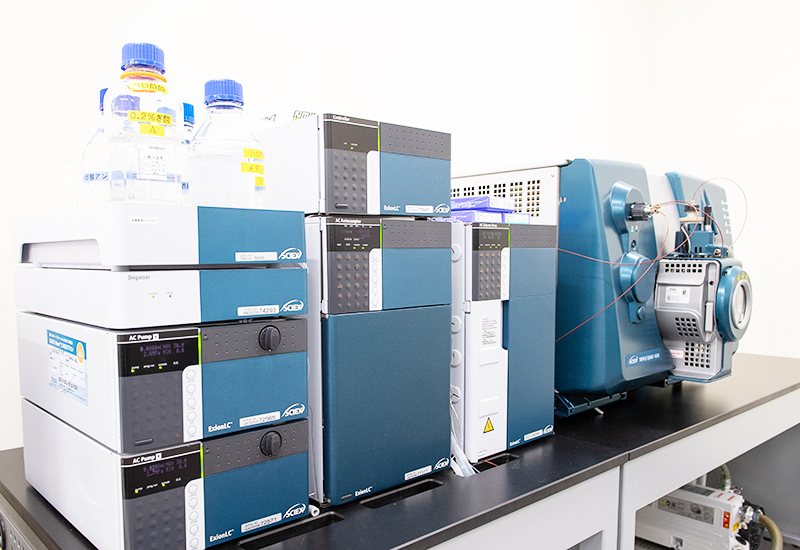 液体クロマトグラフで分離した成分を質量分析計を2段階で使い、選択性と感度を向上させた装置です。残留農薬、医薬品、環境ホルモンなど極微量の化学物質を高精度に検出でき、複雑なマトリックス中の成分分析に強みを発揮します。